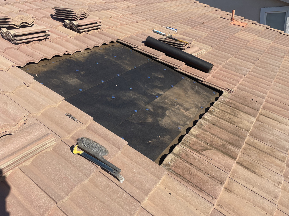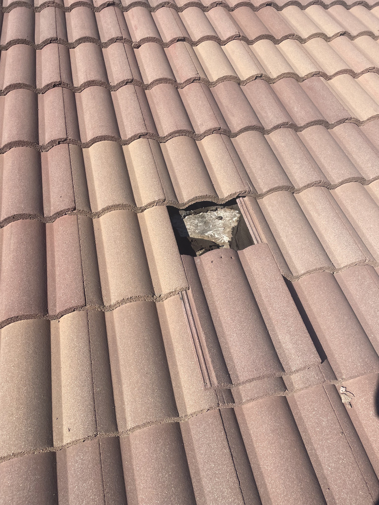 broken tile roof with a leak being repaired by the expert roofing company in hemet, ca
